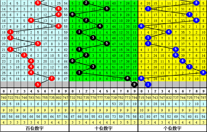 其中,豹子号码开出1次,组三开出7次,组六开出13,单选号码0-9分手出现: