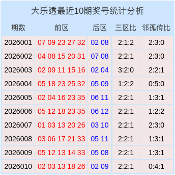 开奖回顾:大乐透第2026010期奖号为:02、03、13、18、26 + 02、09。