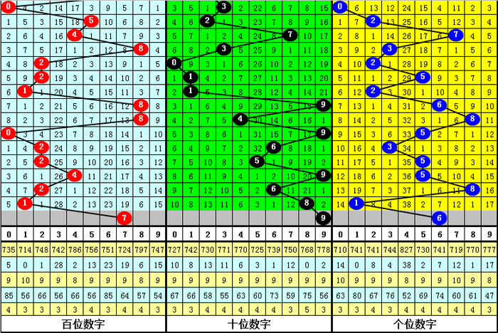 3、在以上0-9号码频次中,号码奇偶比为34:31,大小比为31:34,本期预计百位开出大号,参考号码7。