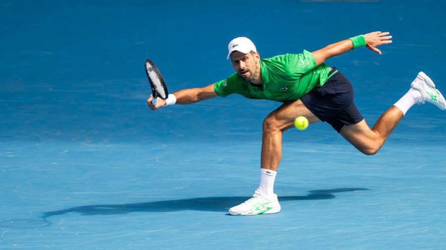 新华社照片,墨尔本(澳大利亚),2026年1月28日\n 1月28日,焦科维奇在比赛中回球。\n 当地时间1月28日,在墨尔本进行的2026年澳大利亚网球公开赛男单四分之一决赛中,意大利选手穆塞蒂在领先两盘的情况下退赛,塞尔维亚选手焦科维奇晋级四强。\n 新华社发(胡泾辰摄)