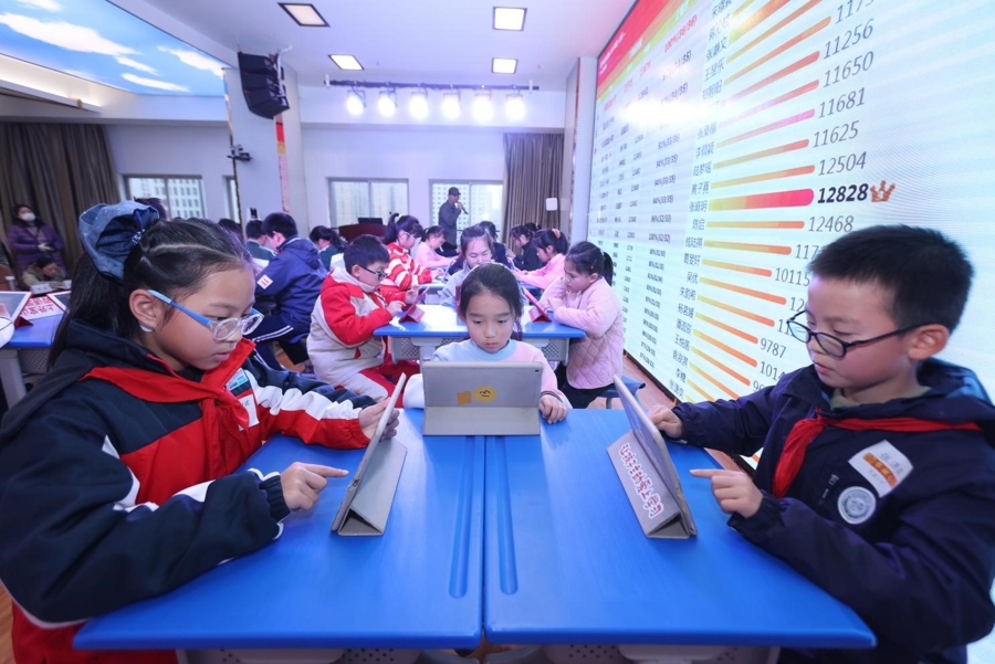 赛题涵盖从《诗经》《楚辞》至近现代爱国诗词,小学组题库达360首,初中组300首。比赛采用“电竞赛”形式,优益配选手答题分数实时呈现在大屏幕上,台下带队老师与家长呐喊助威,气氛热烈。