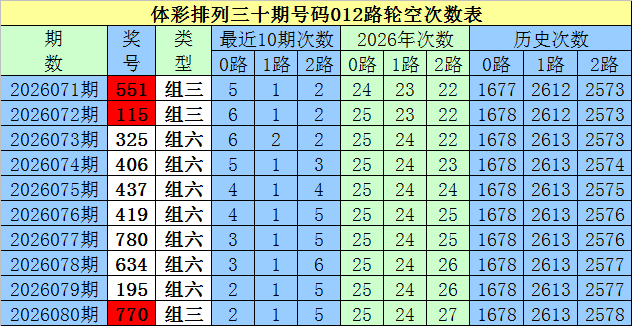 信钰证券开奖转头:成列三第2026080期奖号为:770,号码012路比为1:2:0。