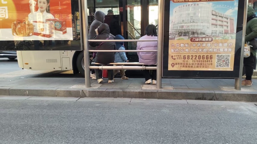 今天下午,记者再次来到康沈路年家浜路。这座汇聚了13条公交线路的“公交大站”客流依旧。在站台处,不少乘客正在候车椅上休息。