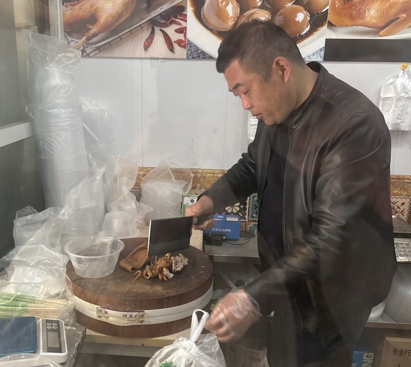 刘浩楠在我方的店里切卤味。 杨书源 摄