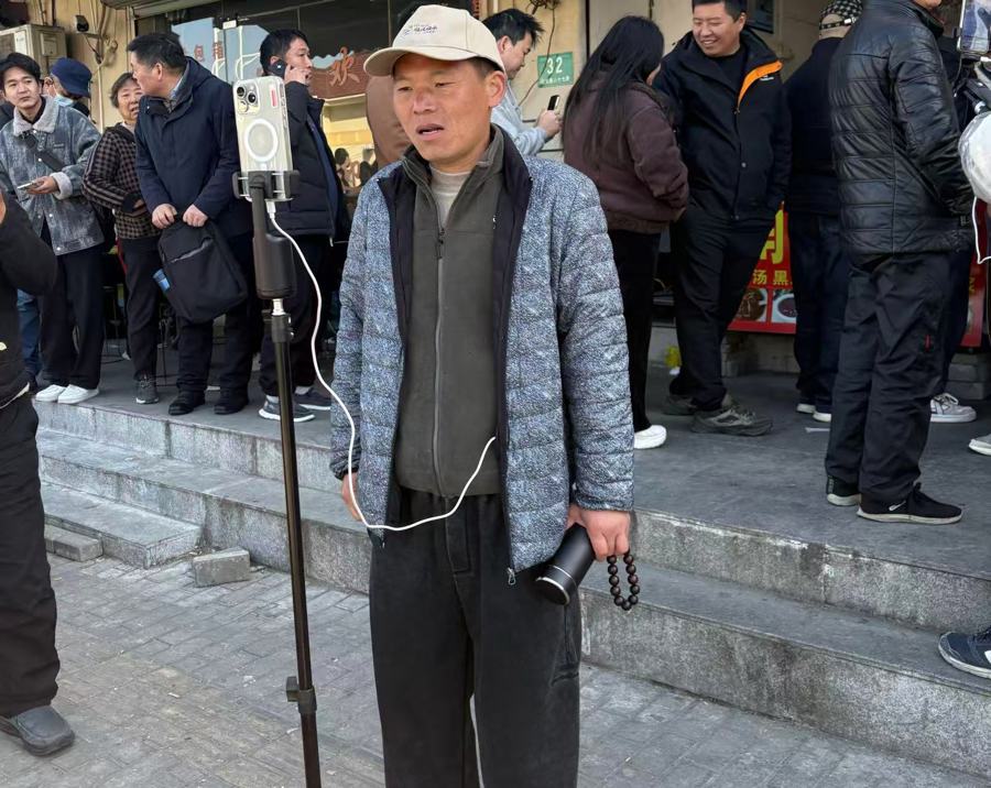 在距离小店正门口十多米处,胡宗举支起了三脚架,这位来自安徽阜阳的网约车司机,是小店走红的推手。