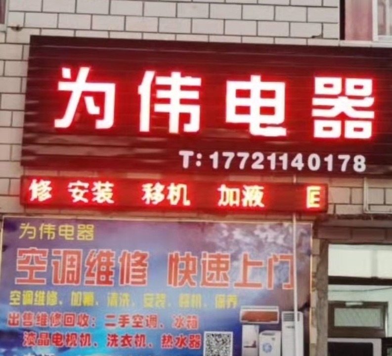从水煎包店回租住的农民房,曹为伟把附近那家仍是退租的家电修理铺的牌号灯光点亮了。去年因为资本压力,他退租了铺子,但靠着和老房主的交情,保留了这块牌号。