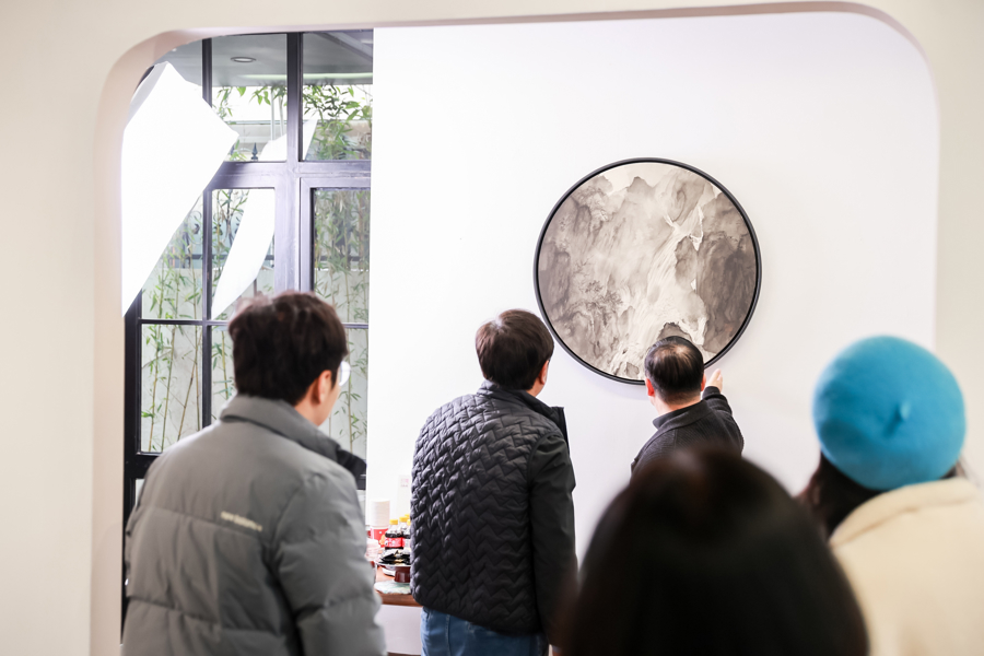 这种艺术追求,在展览的场域吩咐中获得了玄机的呼应。展厅一角操盘袋配资,几支含苞的玉兰花静立,几块青石杂沓有致,引出一条间接深幽的不雅展之路。以软雕刻形式吊挂呈现的《华严泷》,远不雅,是重墨铺陈的瀑布组成;近看,则是传统皴擦积染的文字细节。“昂首见喜”,展览名能够正暗合了丘挺这段创作阅历:疲钝之中,仍有不期而遇的欢喜。