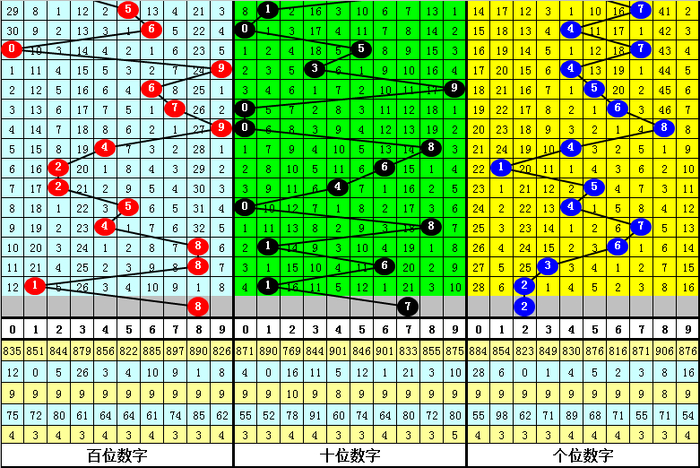 第一位012路号分布为4:3:3,本期第一位应注意1路号开出,看好10。