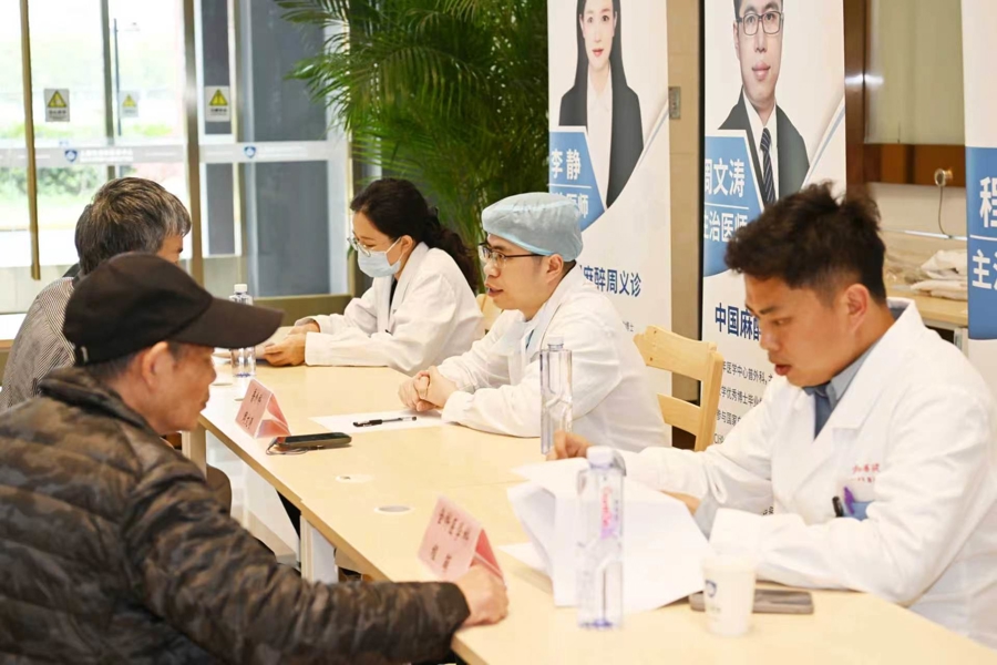 来自申城多家三甲病院的麻醉科、疾苦科以及寝息领域的众人在现场义诊