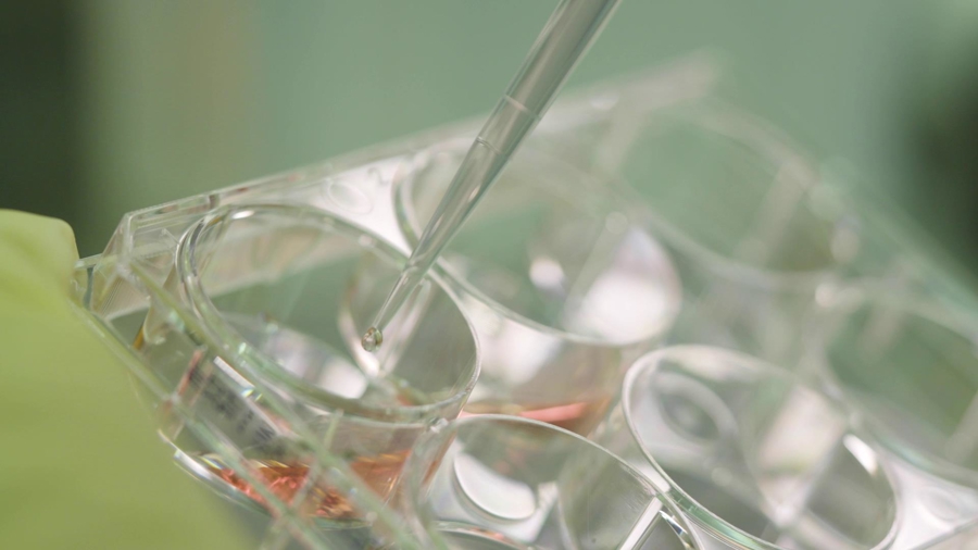 跃赛生物实验室里,责任主谈主员正在不雅察组织样本。