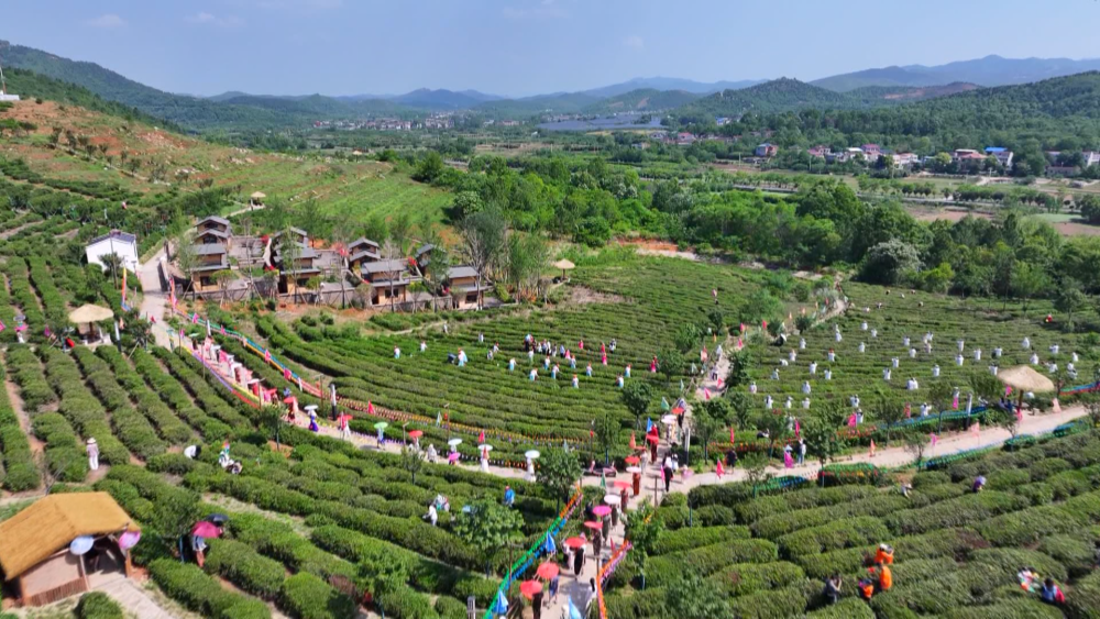 孝感市孝昌县周巷镇孝孟红生态不雅光茶园举办的茶叶采摘活动。新华社发