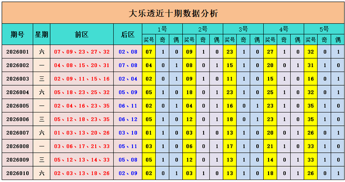 上期回顾:大乐透第2026010期奖号为:前区02、03、13、18、26,后区02、09,前区奖号和值为62,后区开出小大组合02、09