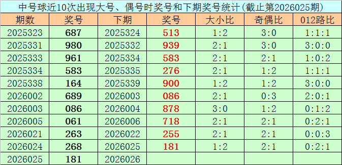 开奖回顾:体彩排列三第2026025期开出奖号181,奖号大小比开出1:2,奇偶比开出2:1,012路比开出0:2:1。