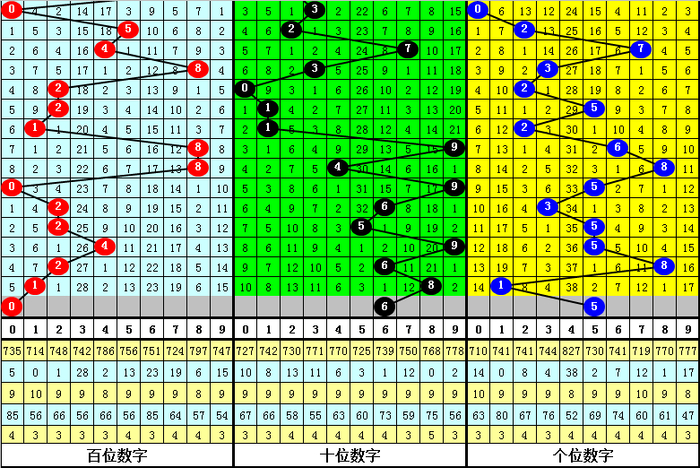 中号球:上期奖号为8,开出大号、偶号,该位前10次开出大号、偶号的现象时其奖号分别为:687、980、961、583、164、689、086、061、263、268,其中中号球012路比为5:0:5。
